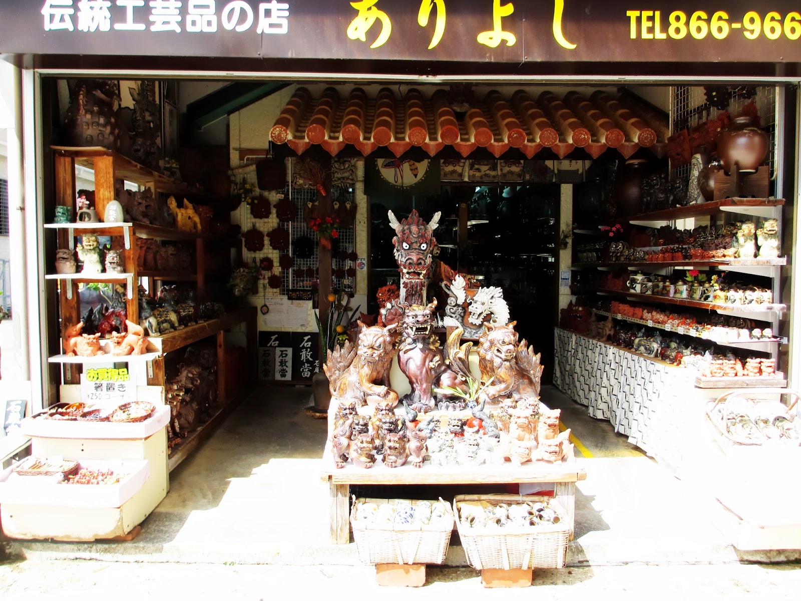 The most popular type of pottery is Shisa statues. These little lion-dog dudes are called Shisa, and they're used to ward off evil spirits. They typically come in pairs, and usually the right Shisa has an open mouth (to ward off the bad spirits) and the left Shisa's mouth is closed (to keep in good spirits). They're often placed on rooftops, entrances, and basically anywhere one might fit. They're cute or scary, depending on the artist, but also quite expensive and not particularly useful, so I didn't buy any. (I did buy some Shisa-head magnets though.)